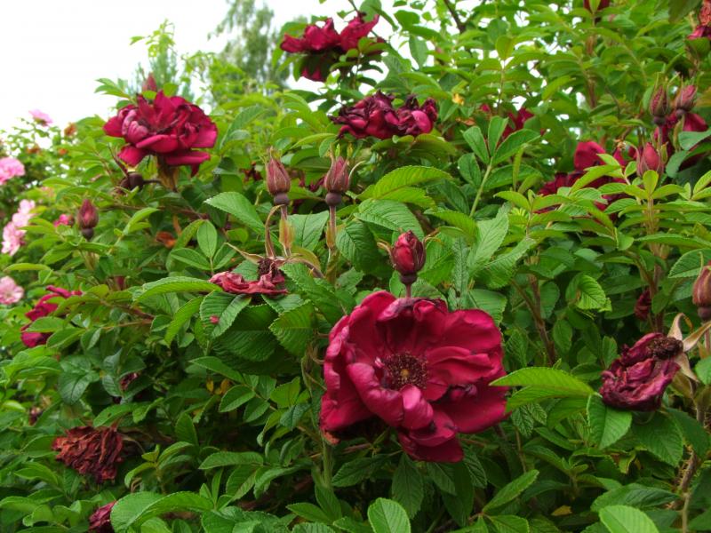 dieses Jahr noch kräftig zurückschneiden,weil sie mir untenrum zu schütter wird.Sie sollte nicht den ganzen Tag in der prallen Sonne stehen,sonst verbrutzeln die dunklen Blüten sehr schnell.