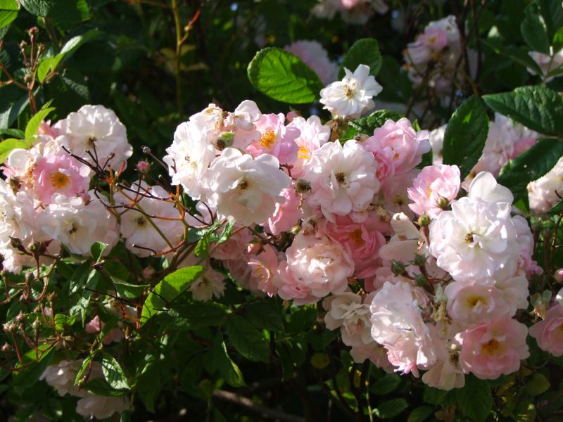 'Coup d' Hébé' Bourbonrose von Laffay 1840.Die hatte ich nie so richtig berücksichtigt.Dabei hat sie für eine Bourbonrose erstaunlich gesundes Laub und die nickenden,duftigen Blüten wirken sehr schön.