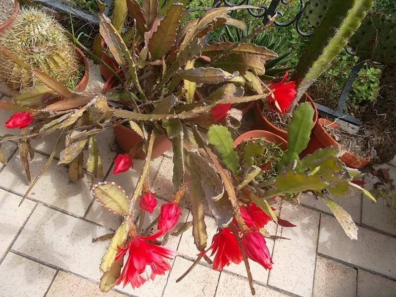 Und jetzt beginnt ein Blattkaktus mehrere Blüten zu öffnen.