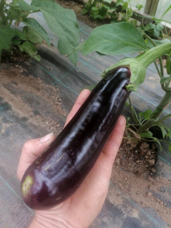 Im Gewächshaus sind die ersten Auberginen reif, im Freiland unter Netz ernten wir gerade die ersten Kohlrabi sowie Brokkoli.