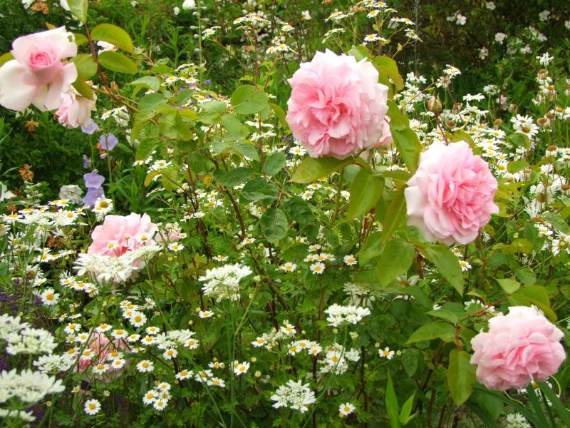 Mal was Buntes. 'Triomphe de Flore' mit gestreiften Blüten.Inzwischen wurzelecht und raumgreifend unterwegs.