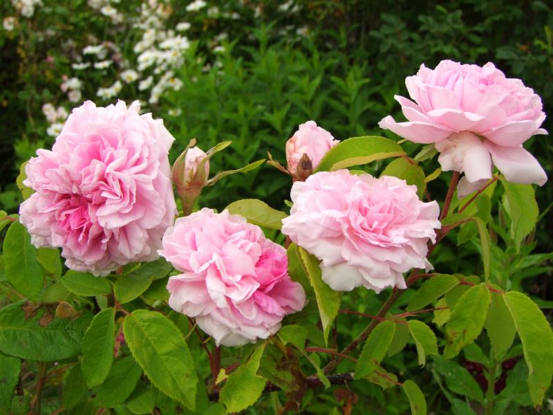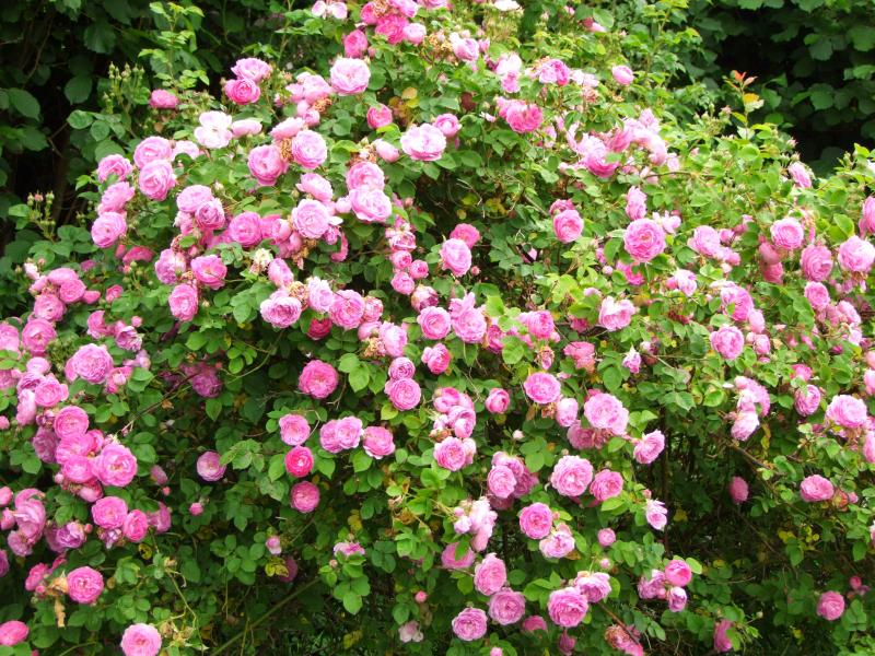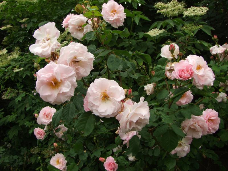 Halbgefüllte Strauchrose 'Fritz Nobis'. Nur einmalblühend,aber dafür sehr lange,