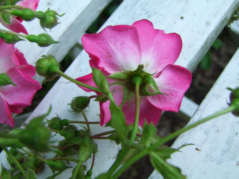 Ich habe da in der Ramblerhecke noch mehr kleinblumige Rote.Aber da komm ich im Augenblick nicht an die Schilder,wegen Dschungelsituation ::) :P