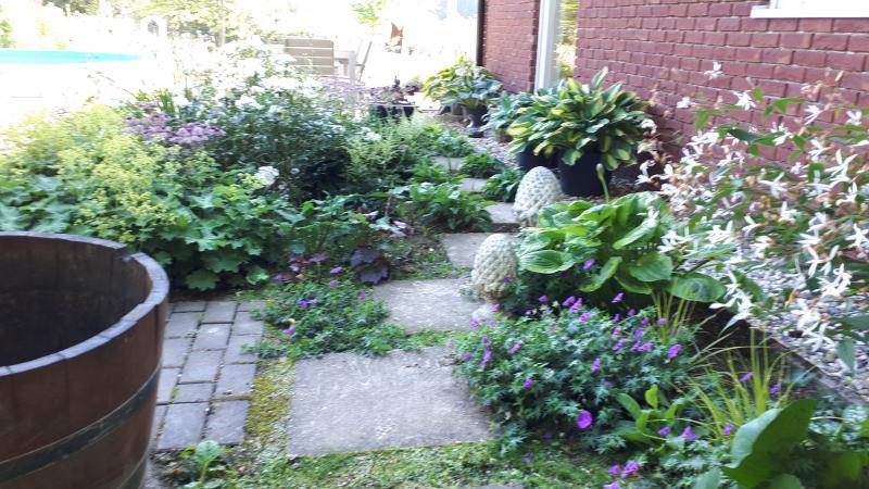 Das ist der älteste Gartenteil unter der Felsenbirne ( jetzt im 5. Jahr) und am Morgen eines heißer werdenden Tages noch recht lauschig. ;D