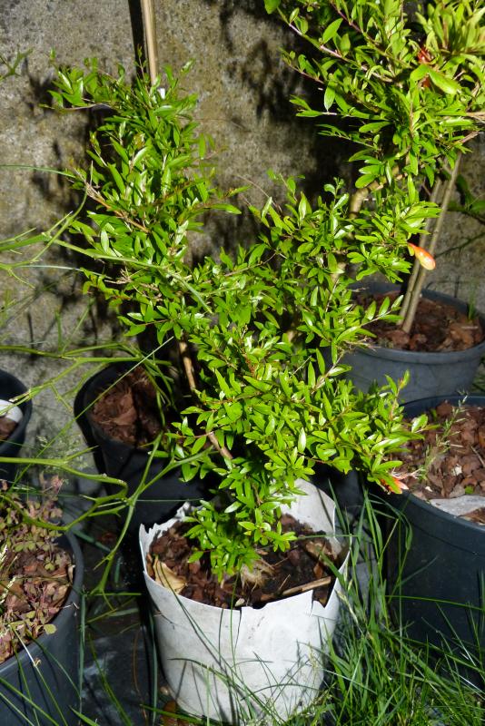 mein bulgarischer granatapfel (namen vergessen), angeblich auf -20° tolerant. habe den topf diesen winter im freien vergessen bzw. übersehen aber es hat hat ihm nicht geschadet. im frühjahr hat sich lange nix getan und ich wollte den topf schon kompostieren...