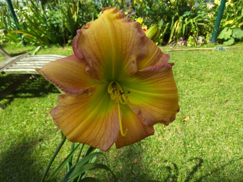 Und dann gab's heute morgen eine perfekte Blüte von 'Forsyth Mardi Gras'. Die Farben sind wirklich abgefahren, der Schlund grasgrün.