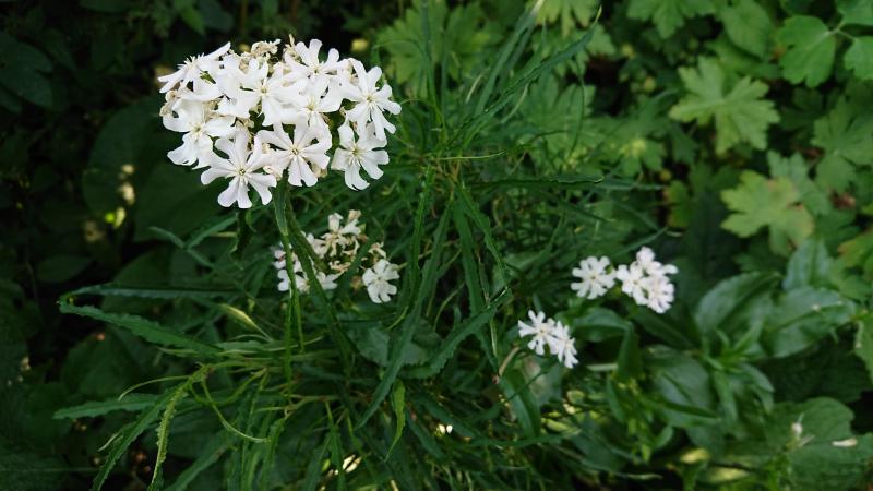 Zum Abschluss eine weiße Lychnis coronaria, die im letzten Jahr ausgesät wurde. Gefällt mir gut, besonders da das auffällig knallige Orangerot der Art schwer zu kombinieren ist.