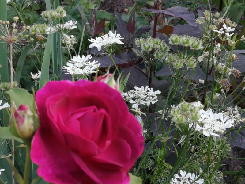 'Sophie's Perpetual' sollte ich eigentlich aus den Fängen der Hortensie befreien. Andererseits sind sie zur Blüte ein nettes Paar.