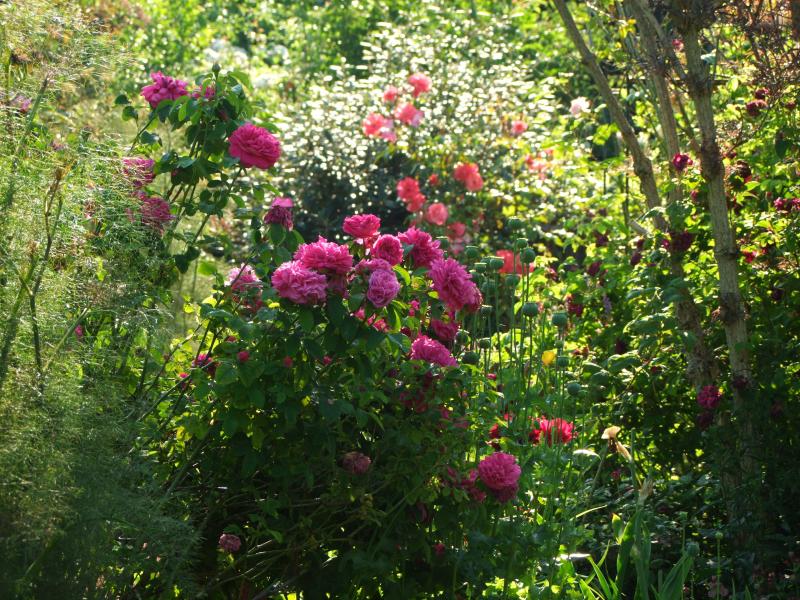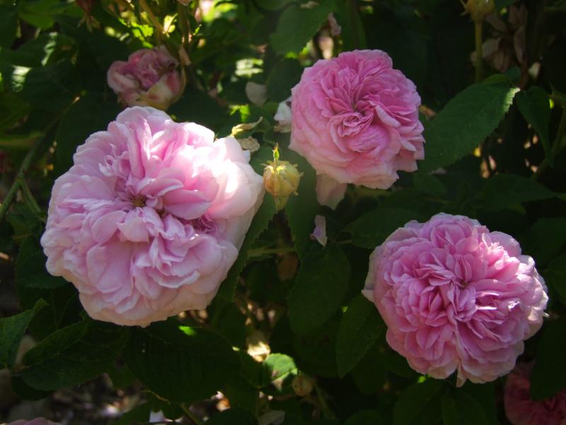 Heute morgen im tiefstehendem Licht 'Monsieur Hoste' Remontanthybride mit feinem Duft,in Schüben blühend.