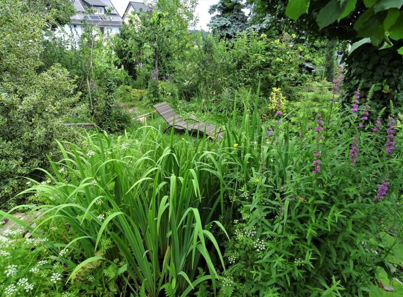 Nur das Chinaschilf muss wieder in die Gänge kommen. Das hatte ich im Frühjahr 2018 geteilt, doch durch die letzten 2 trockenen Sommer ist es fast eingegangen und auch durch dieses bislang immer noch trockene Jahr legt es kaum zu.