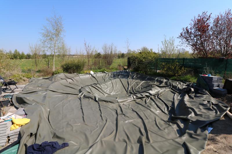 So, die Teichfolie wird verlegt...