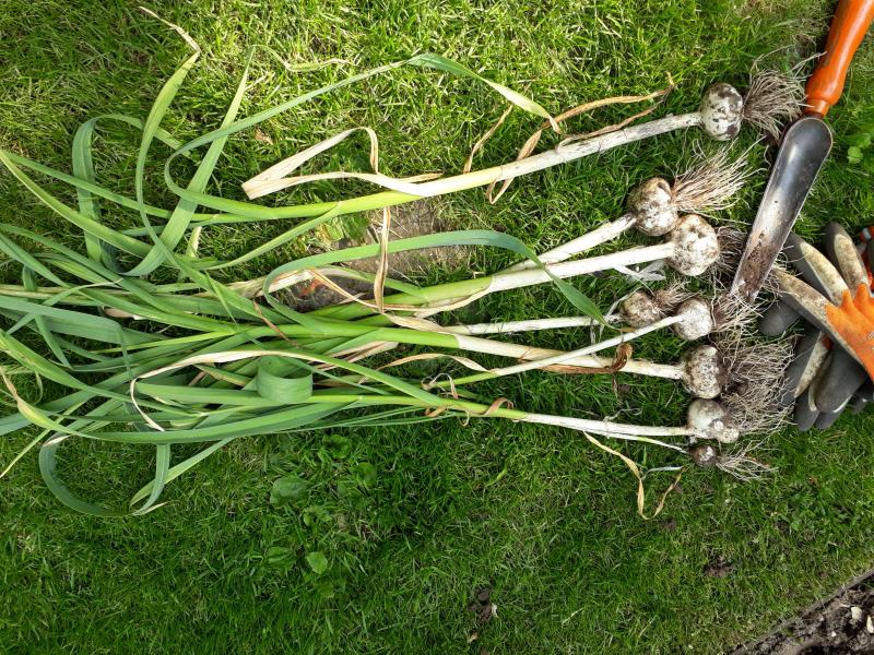 Als Neuling in Sachen Gemüseanbau zeige ich heute mal meine Knoblauchernte aus einer Zehe, die ich neben einen Rosenstrauch gesteckt hatte. Soll den Rosen ja gut tun... ;)