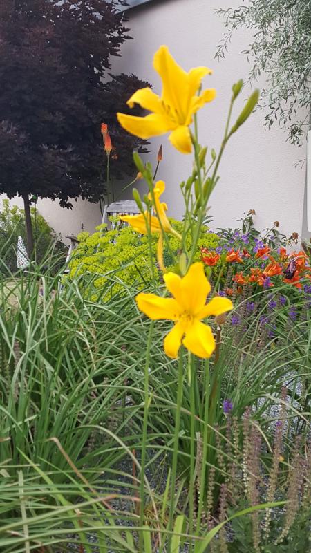 Ich habe hier auch eine Namenlose die hier bestimmt auf 4qm blüht. Sie wurde mir für ein Pflanzkonzept mal als Ersatzlieferung 'Orange Taglilie' geliefert. Damals waren mir Namen noch nicht so wichtig... ;)