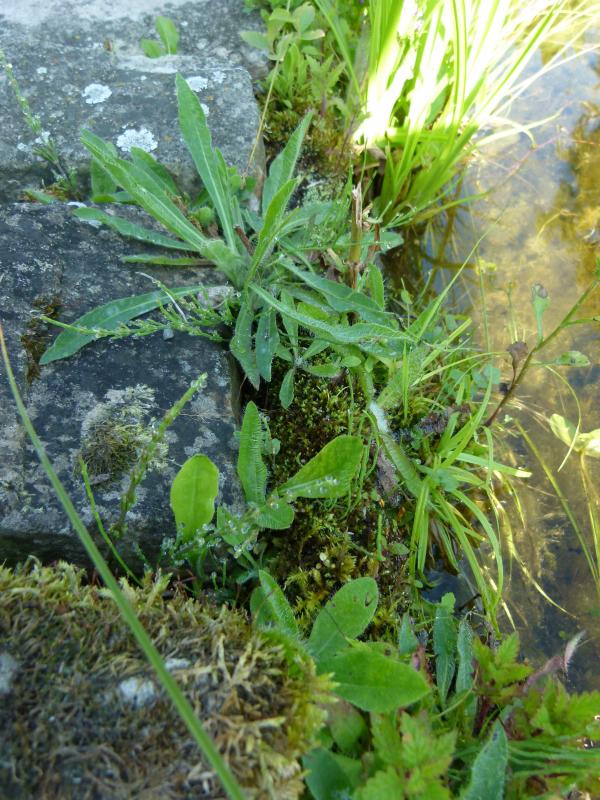 So sieht das dann im Detail aus: Die Ufermatte bewächst sich und ist nicht mehr als Fremdkörper erkennbar. Allerdings keimen auch Pflanzen darauf und strecken ihre Wurzeln ins Erdreich außen und erzeugen dadurch doch wieder einen kleinen Kapillareffekt. Muss man einmal im Jahr rausjäten.