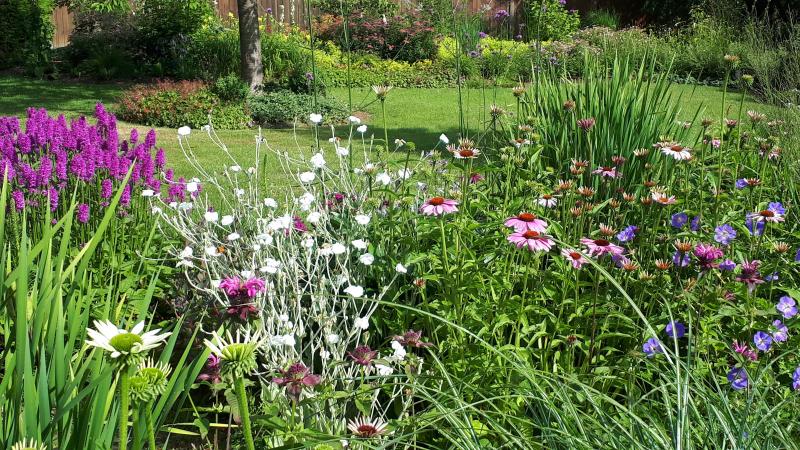 Wenn Gräser und Echinacea Purpurea erscheinen, wird die wiesenartige Struktur im Präriebeet deutlicher. ;D
