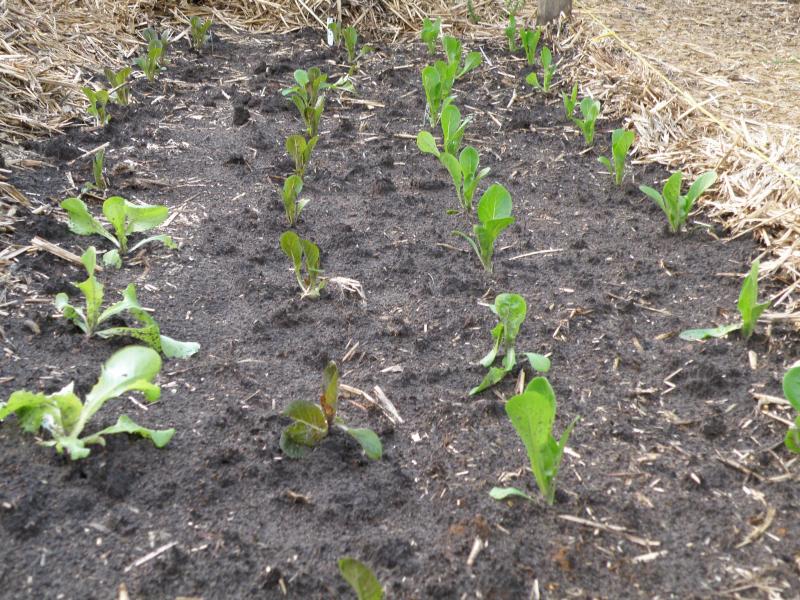 Vorgestern habe ich nun die auf Quickpotplatten ausgesäten Salatpflanzen - 2 Sorten Miniromana und Kopfsalat 'Liller' ausgepflanzt.
