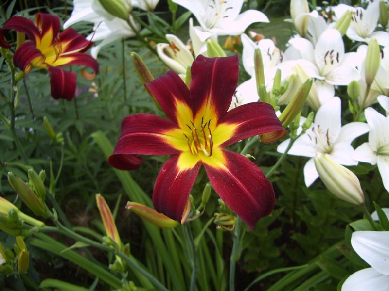 Steht die Lola Branham bei dir gerade? Bei mir neigte sie sich immer gern ein bisschen. Überhaupt ist das immer problematisch, wenn die Taglilien nur von einer Seite Licht bekommen.