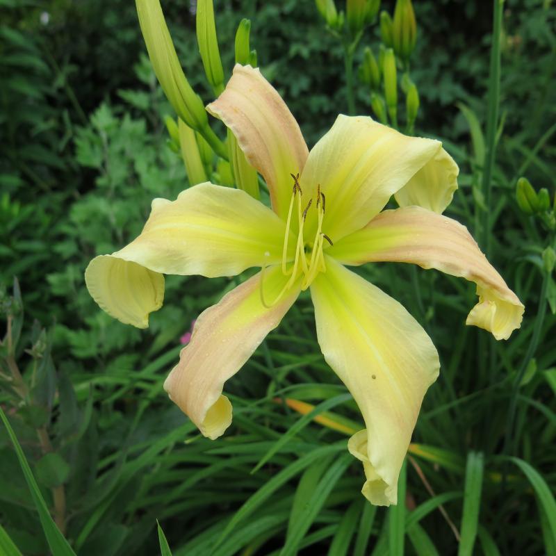 Weder anhand früherer Fotos, noch über meine Listen bekomme ich gerade raus, welche Taglilie da blüht. ??? Ehrlich gesagt konnte ich mich nichtmal erinnern, dort eine gepflanzt zu haben. :-[