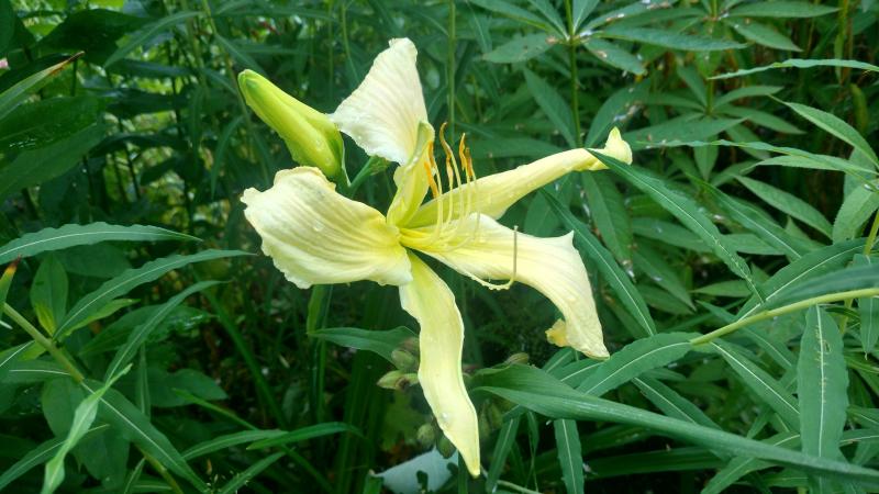 Weder anhand früherer Fotos, noch über meine Listen bekomme ich gerade raus, welche Taglilie da blüht. ??? Ehrlich gesagt konnte ich mich nichtmal erinnern, dort eine gepflanzt zu haben. :-[