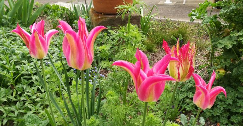 :D die Wegbegrenzng aus Ziegelsteinen seh ich jetzt in Lilos Bild. Die Malve und das Vogelfuttersilo seh ich genauso wenig wie die Sonnenblumen. Der alte Waschzuber steht da genau richtig im Weg! Die Tulpen sind irre! :D Luxury Lace wird da sehr gut reinpassen.