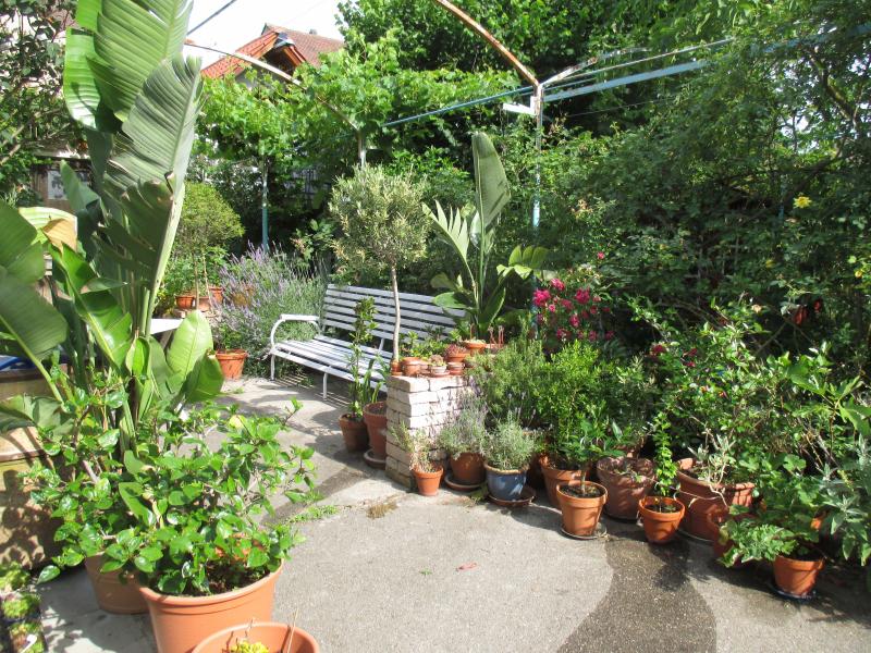 Hier ein Teil unseres Topfgartens. Die Strelizie blüht immer noch nicht.