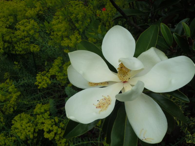Magnolia grandiflora "Alta". Diese eine Blüte füllt den ganzen mit Duft.