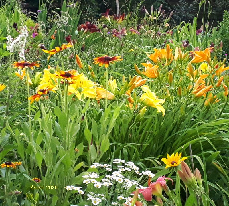 *in der Mitte dieses Beetes schwächelt Rot und Lila noch* ...