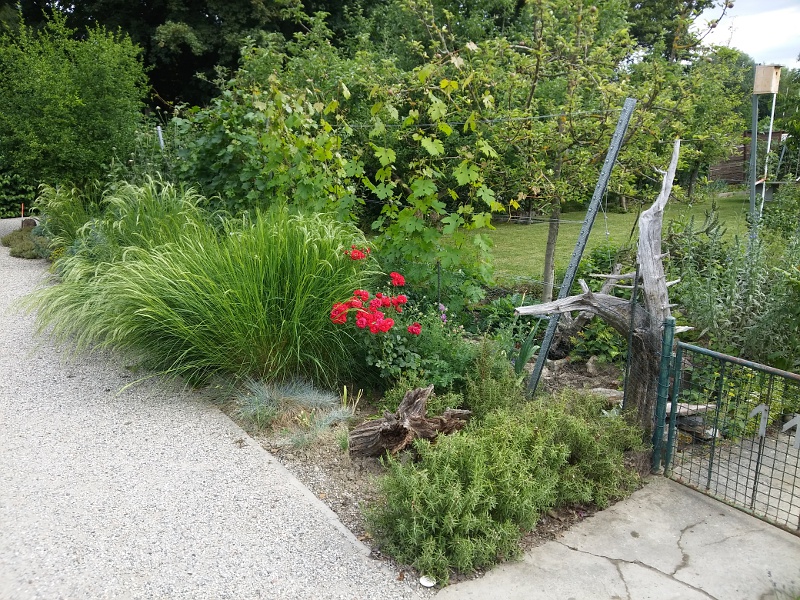 Ich habe das Ganze auch mit einer IRKA-Stahlkante eingefasst, das sind übrigens die einzigen aber sehr hilfreichen Abtrennungen in meiner gezähmten Wildnis, unsichtbar aber effektiv. Hier sieht man sie noch etwas.