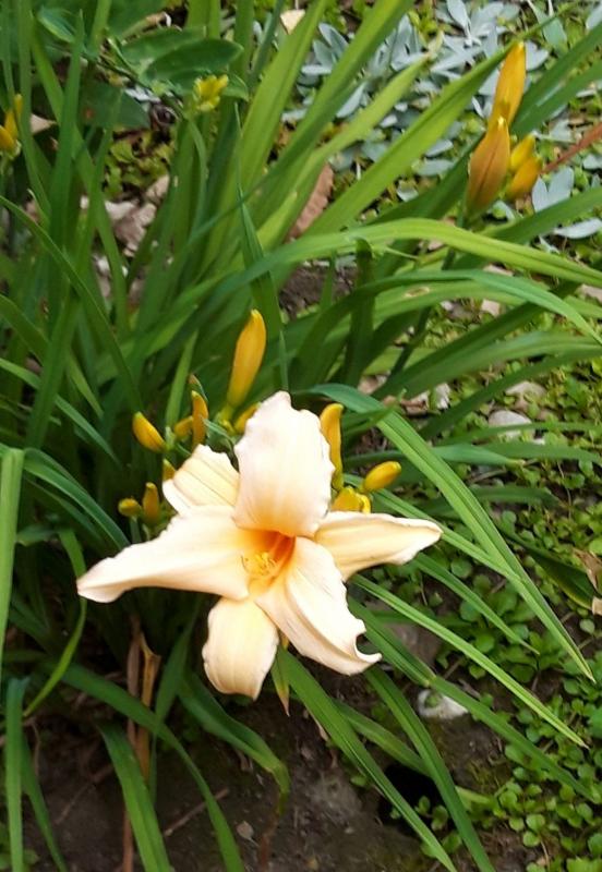 Da sie an anderer Stelle als sehr nässeempfindlich beschrieben wird, habe ich sie etwas erhöht gepflanzt. Auch irritiert mich die Beschreibung der Grundfarbe. Beschrieben wird sie mit creme-rose, pink... auf den Fotos wirkt sie für mich aber immer irgendwie orange. ::)