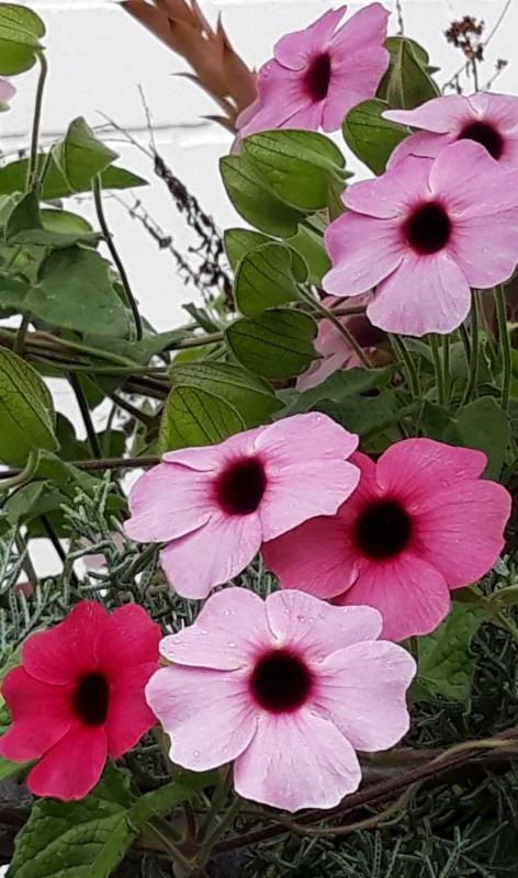 Die anderen in den letzten Jahren aufgekommenen Farben sind vermutlich sterile Kreuzungen, in der Regel von Jungpflanzenfirmen meristemvermehrt angezogen. Es ist da schon durchaus auch das Ziel, dass der Kunde, gerade auch bei den Einjährigen, wie z.B. der Thunbergia alata (und auch bei entsprechenden Zweijährigen, wie z.B. Goldlack) jährlich wieder neu kauft und nicht eine andersfarbige, häufig markengeschützte Sorte selbst wieder durch Aussaat vermehren kann.