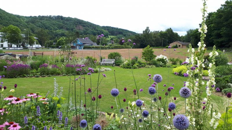 Nun setzen Verbena Bonsariensis und Echinacea die Akzente und auch die Gräser kommen voran. ;D Aber immer noch Königskerzen... irre lange Blütezeit und auch nachher sind die Samenstände lange noch schön. 8)