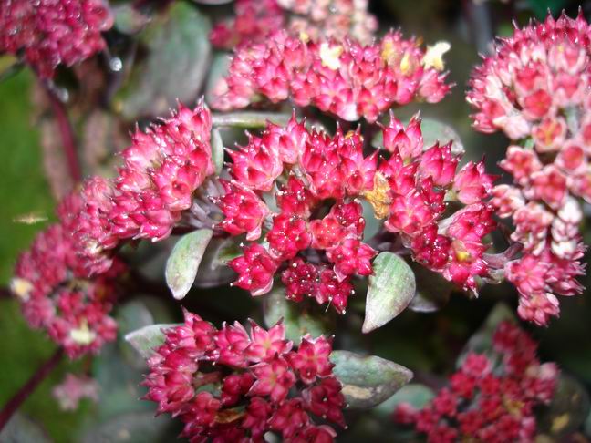 Und dann musste ich noch in der vergangenen Woche bei den Sedümern aus der (vermute ich mal ?) Kientzler-Herbstkollektion zugreifen. Das schöne Rote (mit leicht dunklen Blättern) finde ich besonders attraktiv; welche Art/Sorte mag das sein? Allerdings habe ich den Eindruck, dass die eigentlichen Blüten schon hinüber sind und dass das hier eher die zukünftigen Samenkapseln sind. Trotzdem hübsch und farbenfroh, find ich.