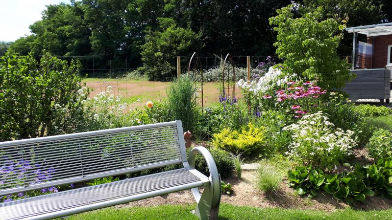 Dein Garten ist schön, so wie er ist bzw. sich entwickelt mit seiner Steppenbepflanzung die die Weite einbezieht. Dabei nicht karg (wie die hiesige Trockensteppe) sondern üppig.