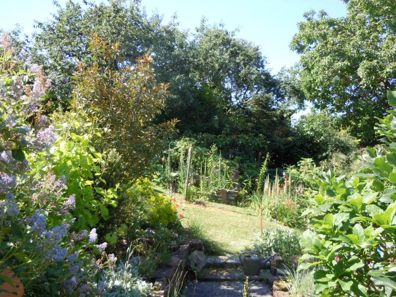 Blick über die Obstwiese Richtung Garten. Der liegt unterhalb.
