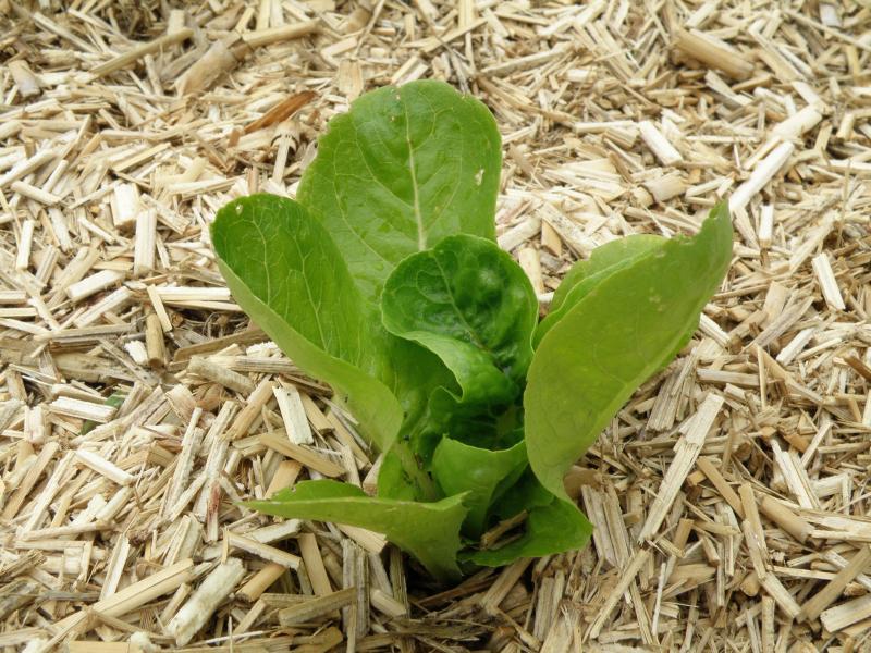auch die deutlich zarteren Kopfsalatpflanzen (ein Mix eines bekannten Anbieters) kommen mit dem Miscanthusmulch-Kragen erstaunlich gut zurecht. Das Wetter ist hier seit eingen Tagen bedeckt und meist regnerisch.