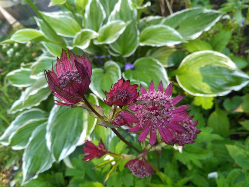 Dies ist mein Astrantia Super Star, namenloser Shaggy-Sämling bei Anja Maubach gekauft. Seit sie vollsonnig steht, ist sie geradezu explodiert.