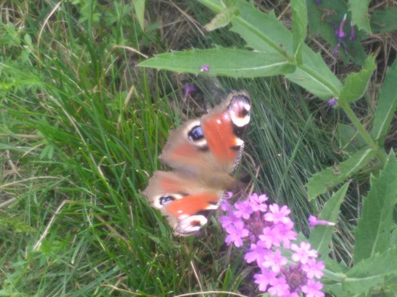 Von den Lepis sehr begrüßt, es geht die Sage von den verschwundenen Kleinen Füchsen, Aglais urticae, ich habe hier jedes Jahr einige, ein Brennnesselfresser übrigens. Ich glaube er war das mit der Vorliebe für frisch geschorene Nesseln mit neuem Austrieb im Sommer.![]()
