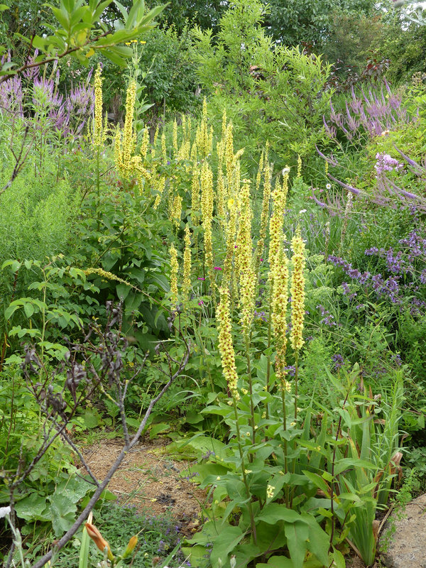 Hier haben die Verbascum die Gelegenheit des offenen Bodens am Weg durch das Beet genutzt. Und sie passen wunderbar zu den Veronicastrum.