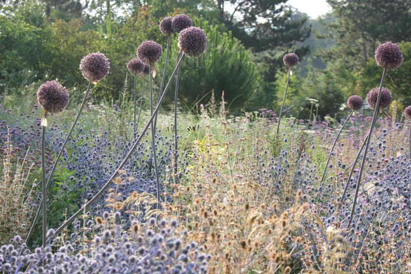 Eryngium planum Blaukappe und Allium Summer Drummer: