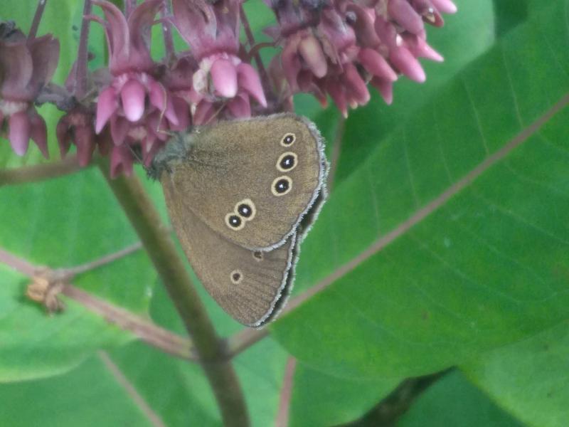 Zum ersten mal in diesem Jahr erwischt, das Waldbrettspiel, Pararge aegeria, das mich seit Tagen da hinten bei den Beeren zwischen den Bäumen narrt, ein Gräserfalter, der sich in Waldnähe aufhält und oft an reifen Früchten herumschnabuliert.