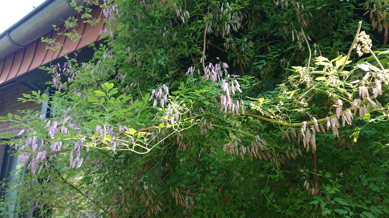 Die Adlumie wächst und wächst, jetzt bis übers Dach. Ich hoffe, sie produziert auch genügend Samen.