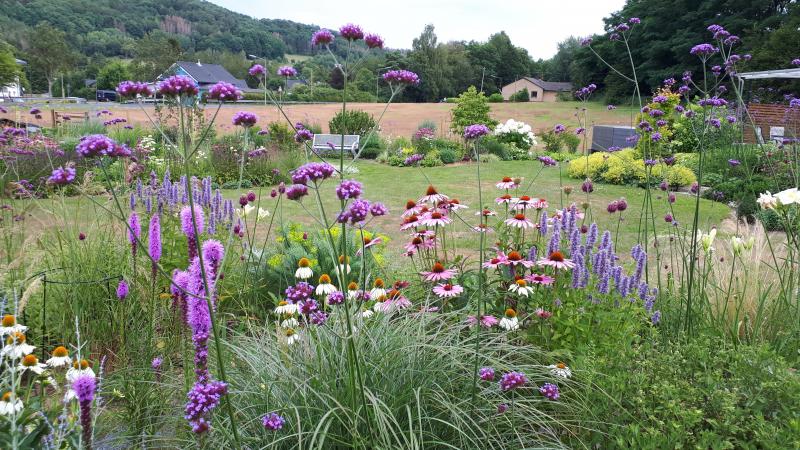 Verbena bonariensis, das Patagonische Eisenkraut sieht super gut aus und als Vorhang im Vordergrund sehr geeignet. ;D