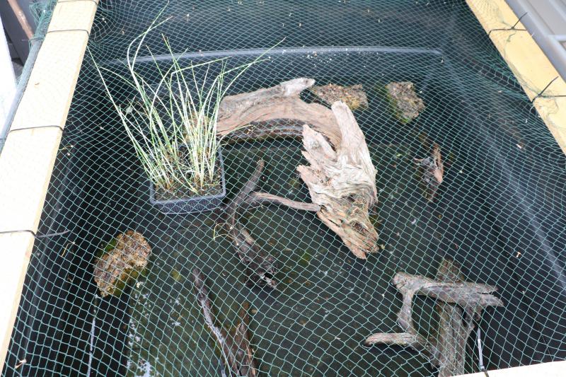 und die Großen kommen in ihren Übergangsteich, auch noch mit Katzenschutz!