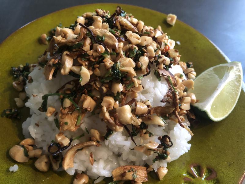 Thomas und ich haben wieder aus dem Simple-Buch von Ottolenghi gekocht: Gebackener Wolfsbarsch (ist bei uns eine Dorade geworden) mit Sojasauce und Ingwer auf Kohl und dazu Thai-Klebereis mit knusprigem Ingwer, Chili und Erdnüssen aus dem gleichen Buch. Ich hätte mich reinlegen können! :P