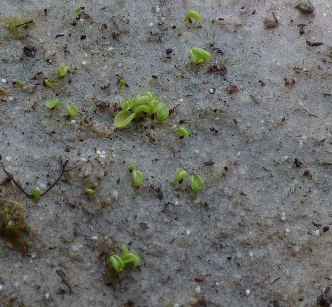 Die Sämlinge, die sich hier neben der Mutterpflanze selbst ausgesät haben, sind immer noch winzigst klein und wollen garnicht wachsen.