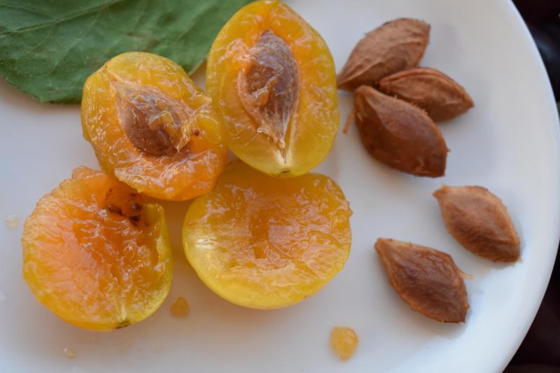 Stein ist schlechtlösend, süß, saftig, bei Vollreife orangegelb leuchtende Früchte, von unterschiedlicher Größe, bis 5cm