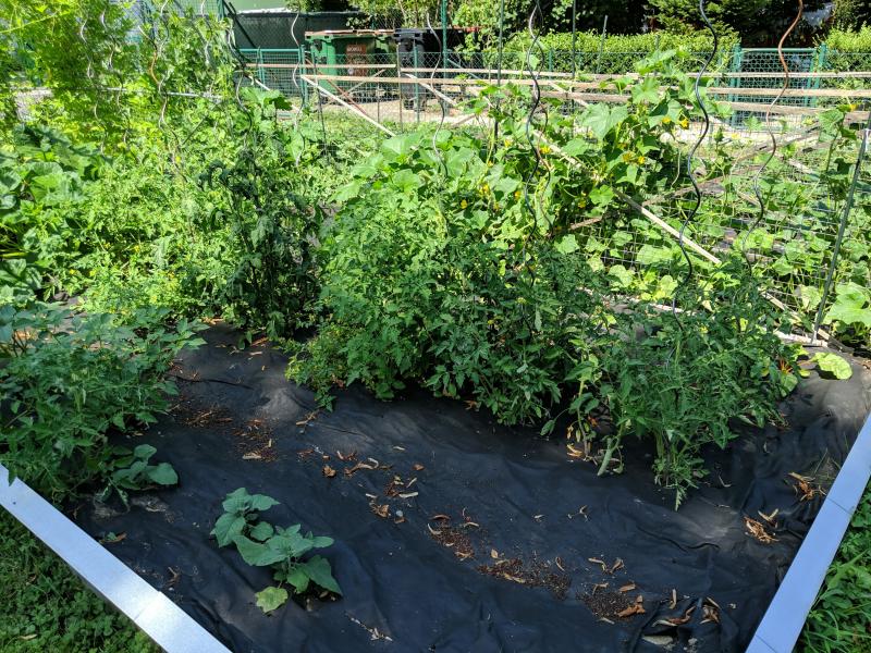 An anderer Stelle habe ich noch eine Reihe Tomaten die bei weitem nicht so ausladend und hoch wachsen.