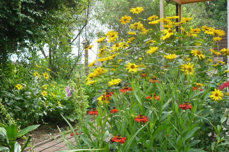 dise sonnenaugen muss ich roden die sind wie unkraut, durch den vielen regen auch umgefallen erdrücken sie alles