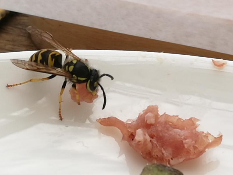 Heute morgen hatten wir beim Frühstück besuch von Wespen. Zum Glück gab es ja etwas was den Tierchen zu pass kam: