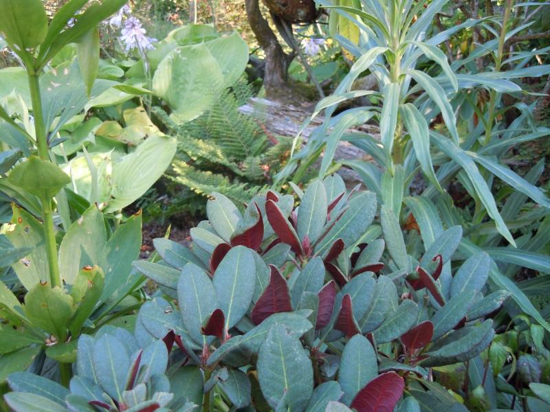 Rhododendron "Wine and Roses" mit seiner wunderbaren Blattunterseite :D